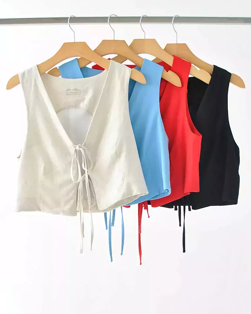 Apresentamos o Colete com Amarração Liso, uma peça versátil e essencial para o seu guarda-roupa de verão.